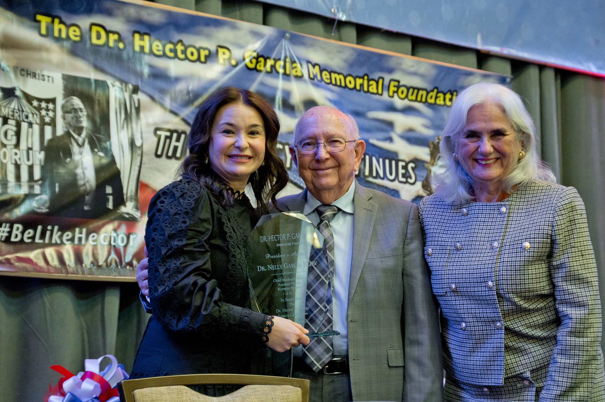 We congratulate our 2026 award recipients for doing an outstanding job for the Dr. Hector P. Garcia Memorial Foundation. Dr. Nelly Garcia Blow is our President's Award recipient, Lori Podolsky is our Legacy Award recipient, and Mary Spicak, is our Community Service Award recipient. Please help me congratulate them on these outstanding achievements.
